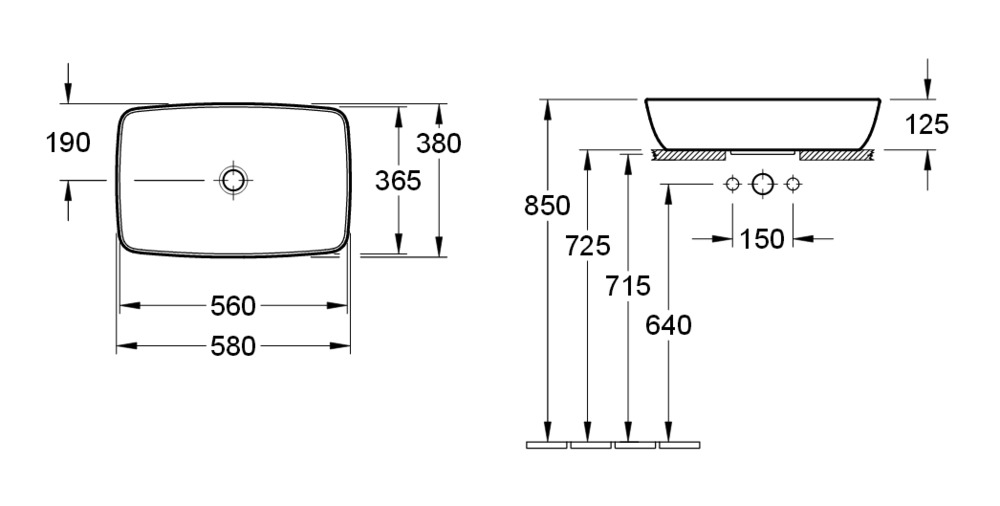 Раковина накладная Villeroy&Boch Artis, 58 х 38 см, на столешницу, альпийский белый, 417258
