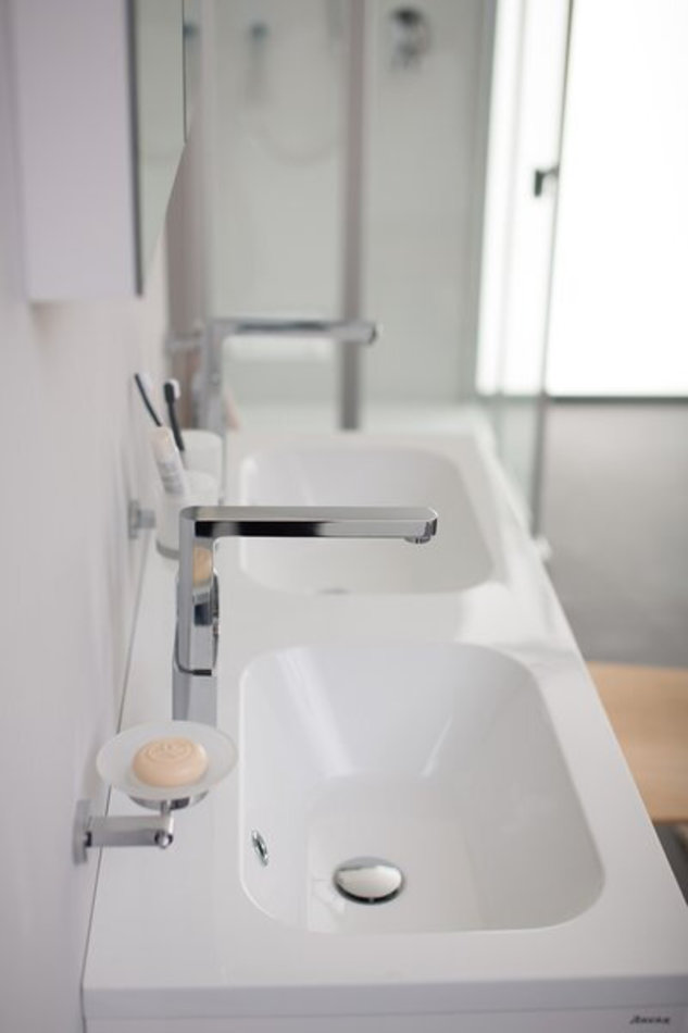 Двойной умывальник Chrome является составляющей частью самой широкой концепции для ванных комнат на рынке. Двойной умывальник Chrome можно дополнить тумбой под двойной умывальник Chrome или установить на стену.