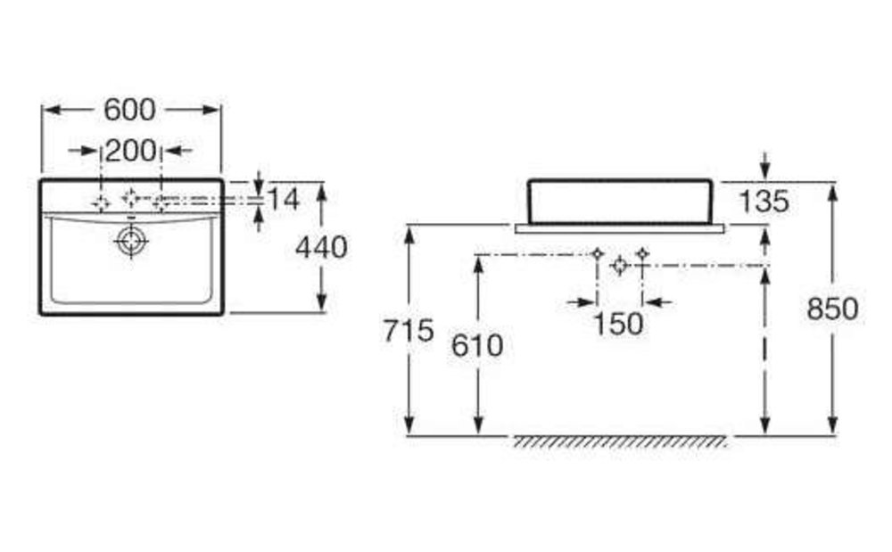 - Намеченные отверстия под смеситель: 2