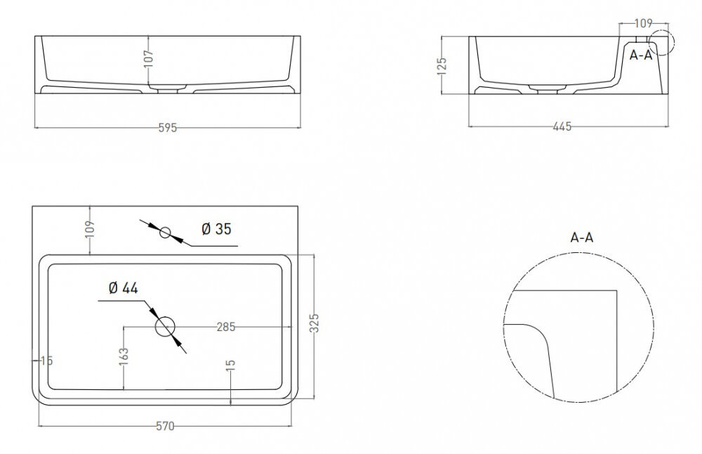 Раковина Salini Ottavia накладная, 59,5 х 44,5 х 12,5 см, S-Sense, белый глянцевый, 1103101G