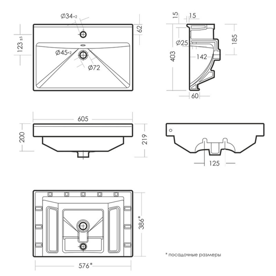 Раковина Sanita Luxe Fest WB.FN/Fest/60-C/WHT.G/S1 60