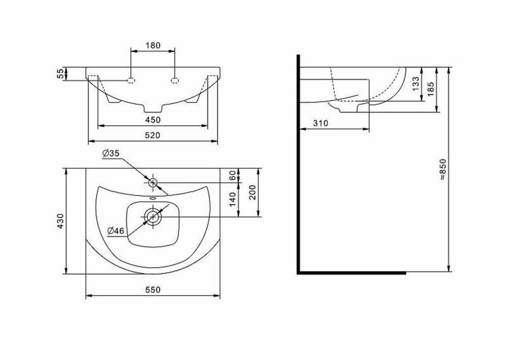 Раковина Santek Балтика 1WH501702-55, фарфор, цвет белый