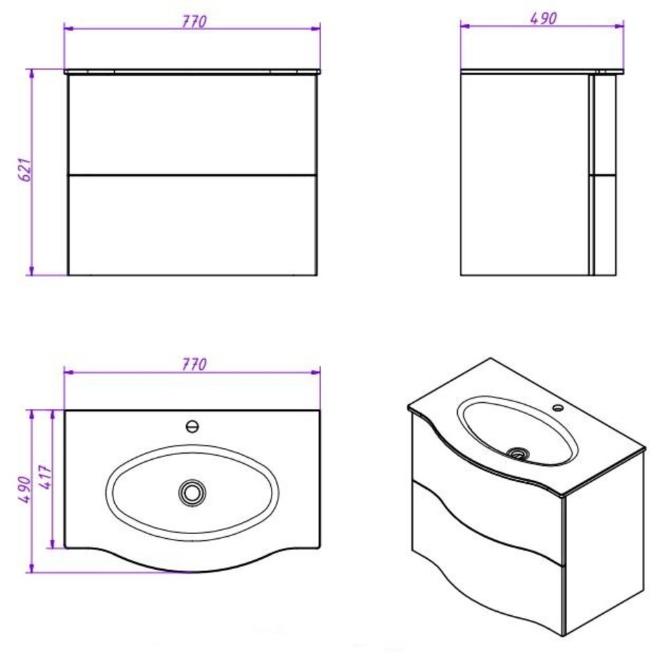 Вся мебель предназначена для использования в ванных комнатах с повышенной влажностью.
