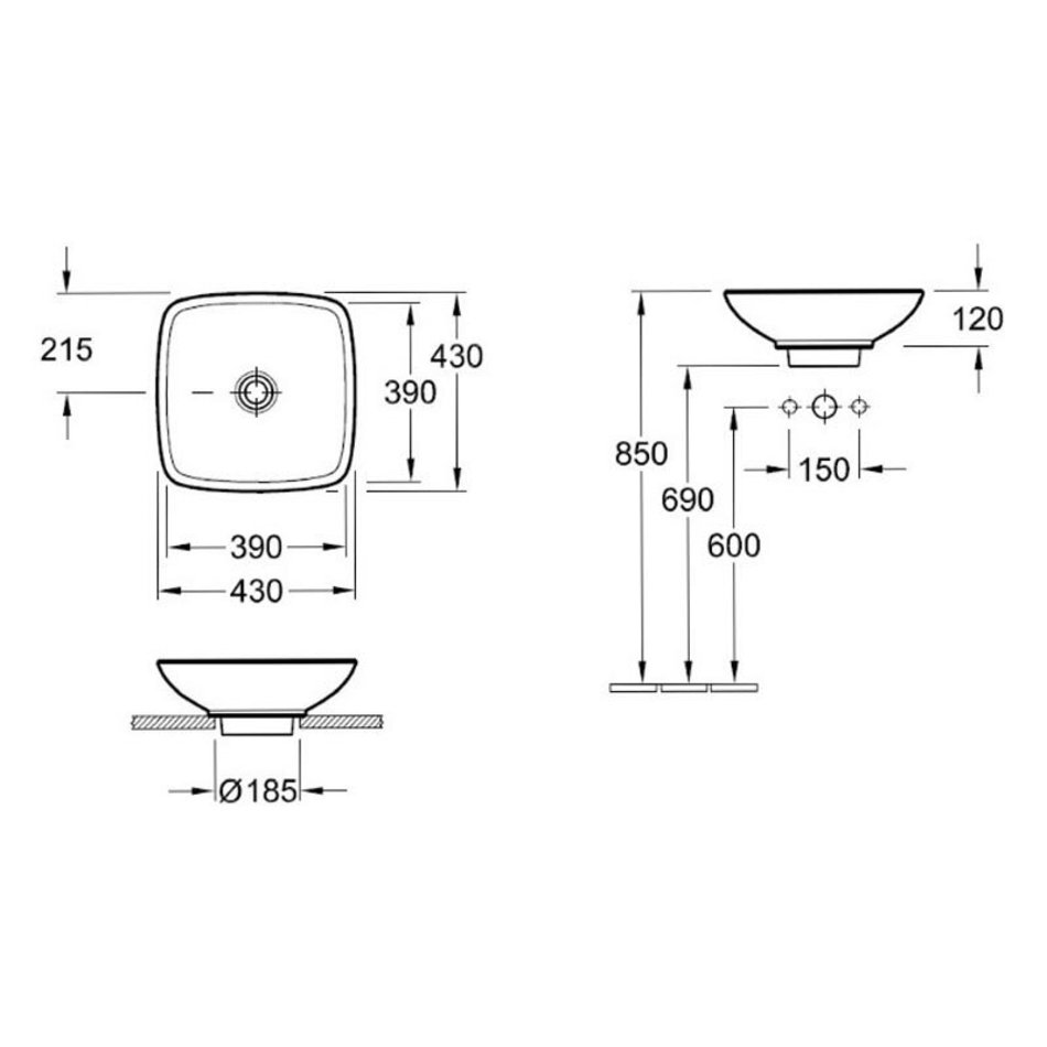 Раковина Villeroy&Boch Loop&Friends 514910R1, 43 х 43 см, встраиваемая сверху, альпийский белый