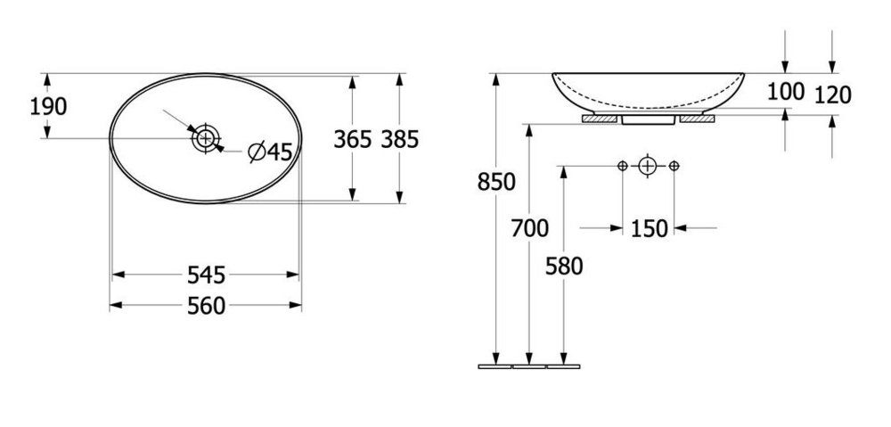 Раковина Villeroy&Boch Loop & Friends 56 x 38.5 см, на столешницу, альпийский белый, 4A4700R1