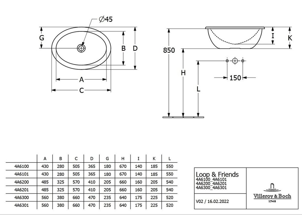 Раковина Villeroy&Boch Loop & Friends 57 х 41 см, альпийский белый, встраиваемая сверху, 4A620001