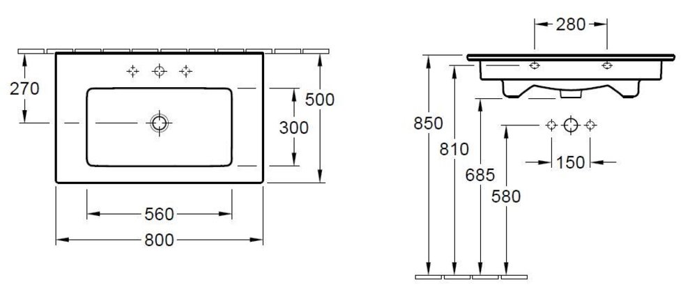 Раковина Villeroy&Boch Venticello 41048GR1, 80 х 50 см, встраиваемая сверху, альпийский белый