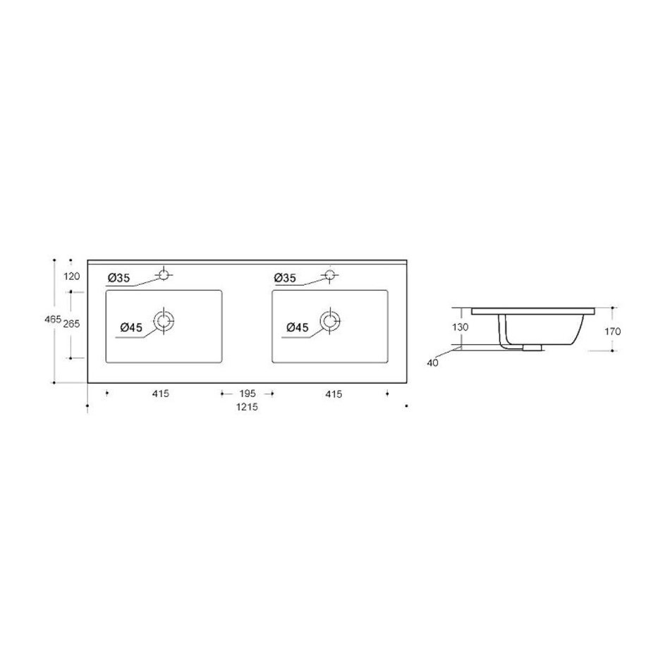 Раковина Vincea, 121.5 см, фарфоровая, 2 чаши, белая, VBS-13120D