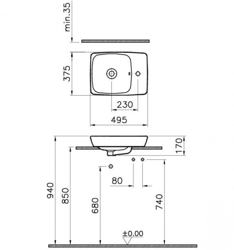 Раковина Vitra Metropole 5665B003-0029 50x38 см, накладная, с переливом