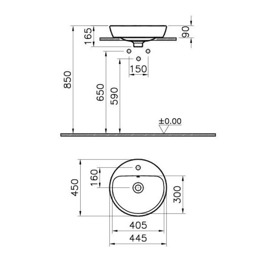 Раковина Vitra Metropole 5941B003-0001 45 см накладная, с переливом