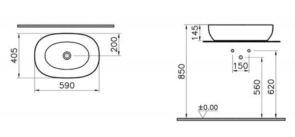 Раковина Vitra Outline 5995B420-0016 накладная цвет - матовый тауп 59 х 40.5 х 14.5 см