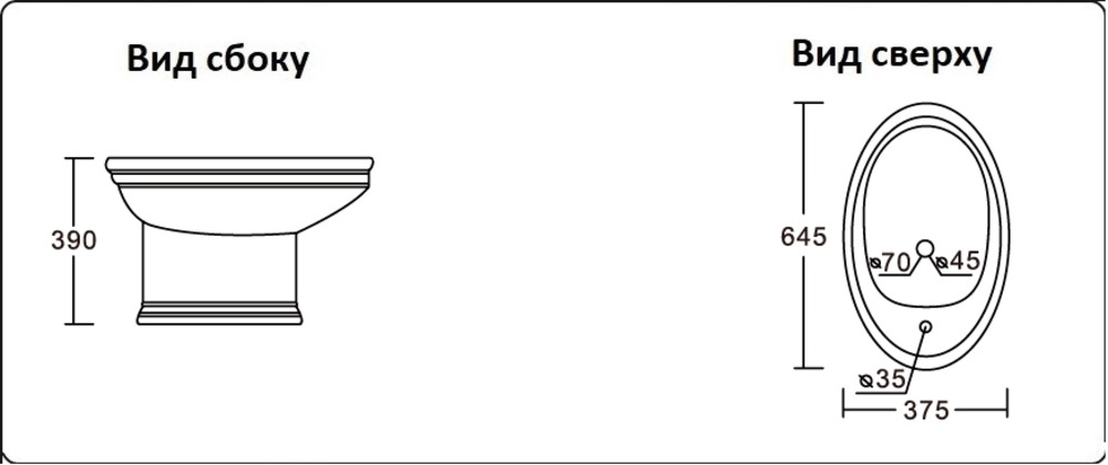 Биде CeramaLux Lux Classic 2051 37.5 x 64.5 x 39 см напольное, белый
