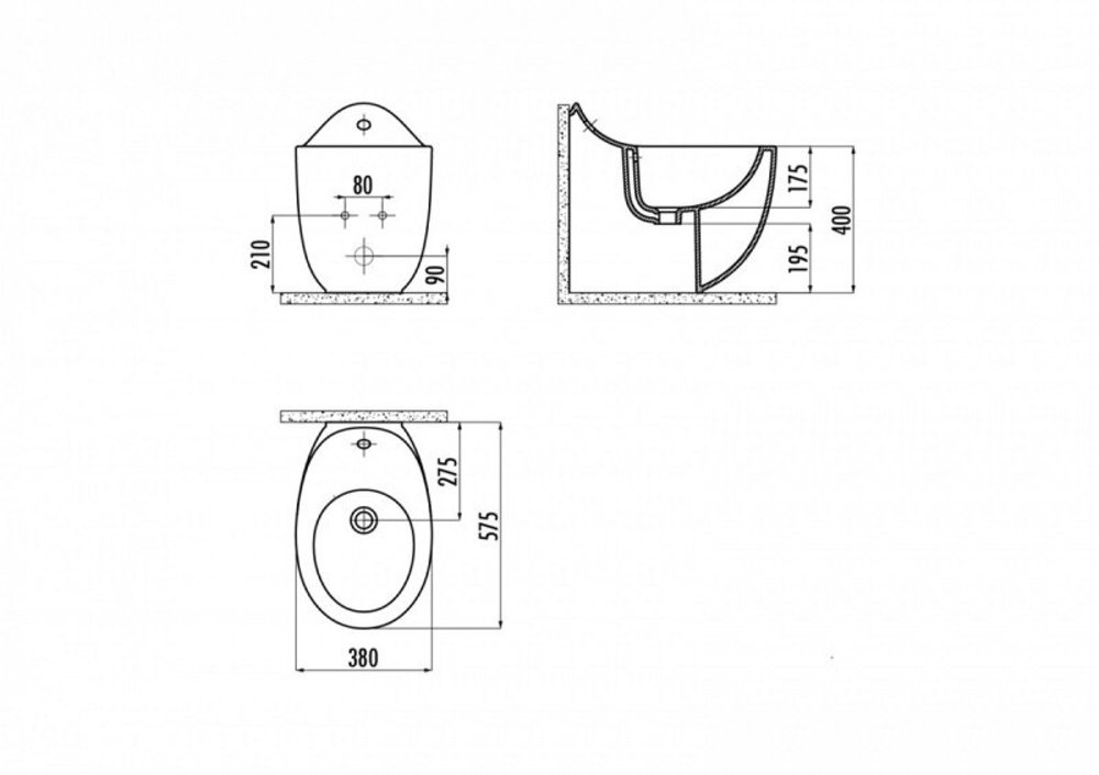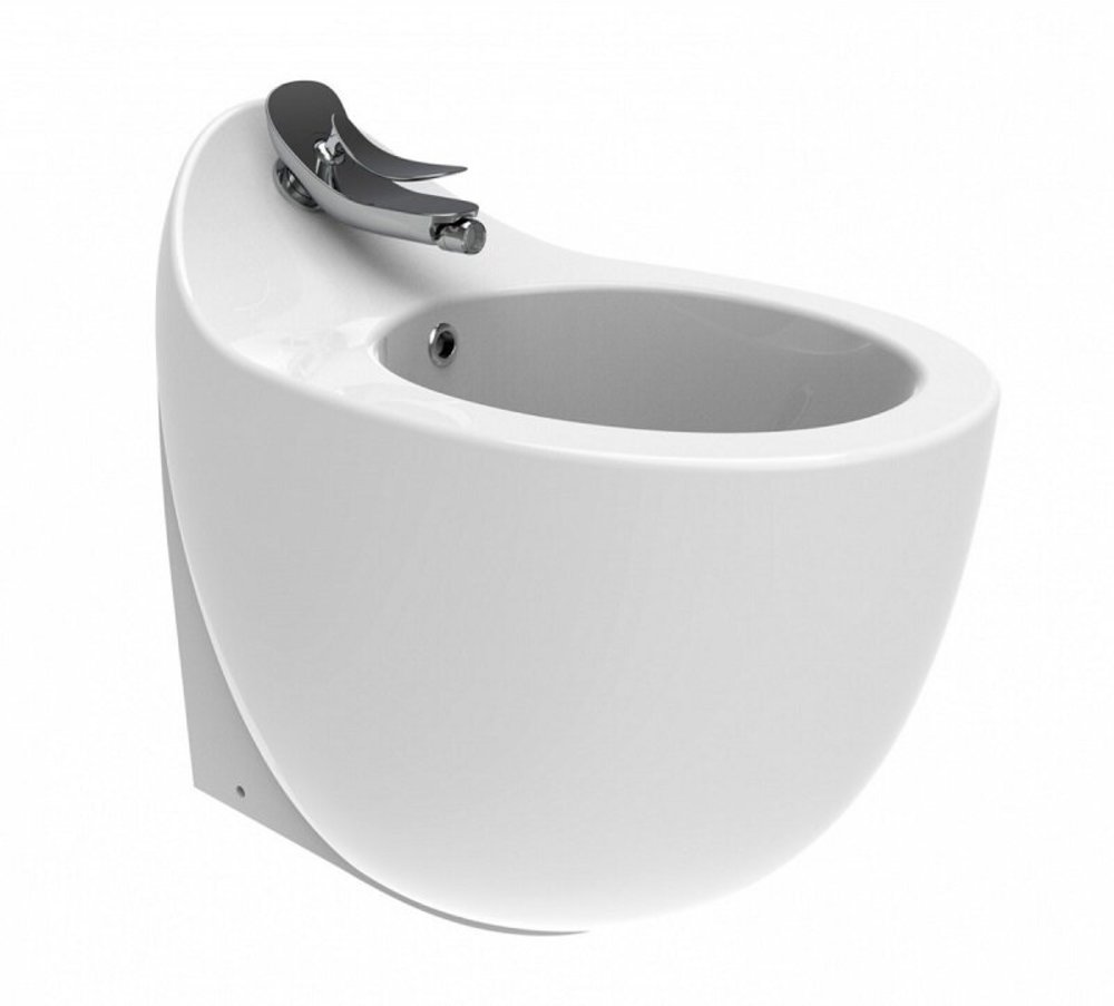 Биде напольное Creavit Foglia, FG500-00CB00E-0000/FG3501/SF198/SF031, со смесителем, сифоном, донным клапаном хром