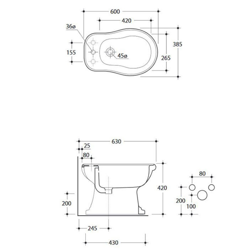 Биде напольное Kerasan Retro 3 отверстия под смеситель, цвет белый, 102001*3