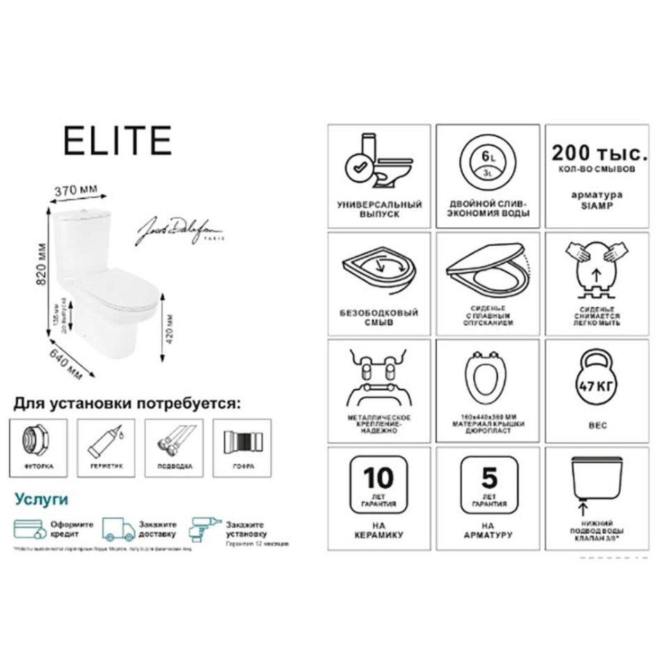 Напольный безободковый унитаз Jacob Delafon Elite E20997-00, крышка микролифт, тонкая