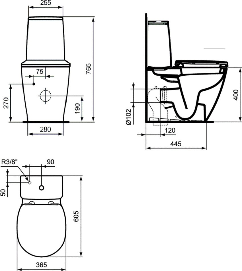 - напольный пристенный унитаз для монтажа с бачком