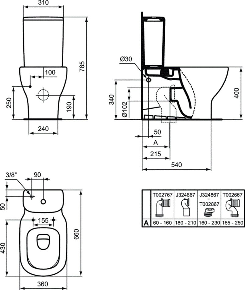 - бачок для унитаза: нижняя подводка, комплектуется с T008201, T008701,