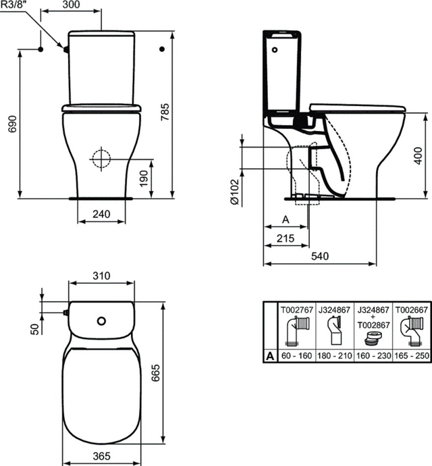 - бачок для унитаза: нижняя подводка, комплектуется с T008201, T008701,