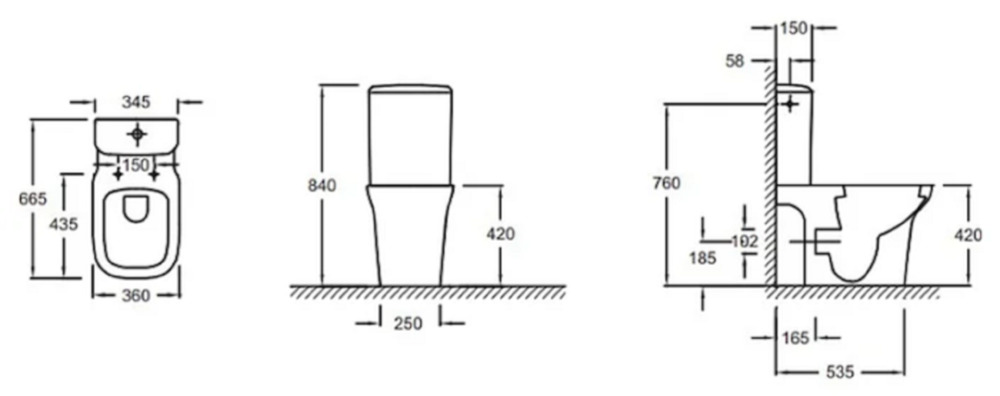 - Безободковая конструкция Rimless: высочайший уровень гигиены.