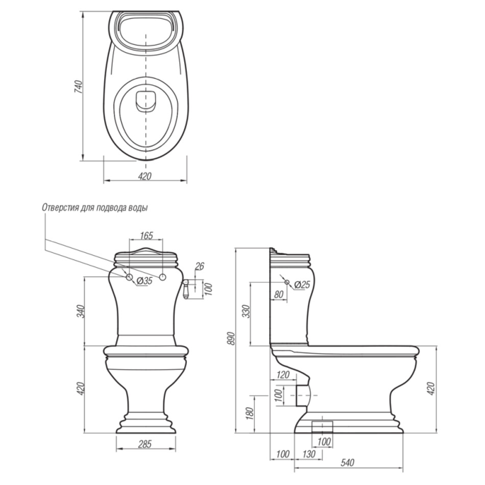 - Бачок моноблока, с отв. для кнопки слива, декор: золото/хром/бронза