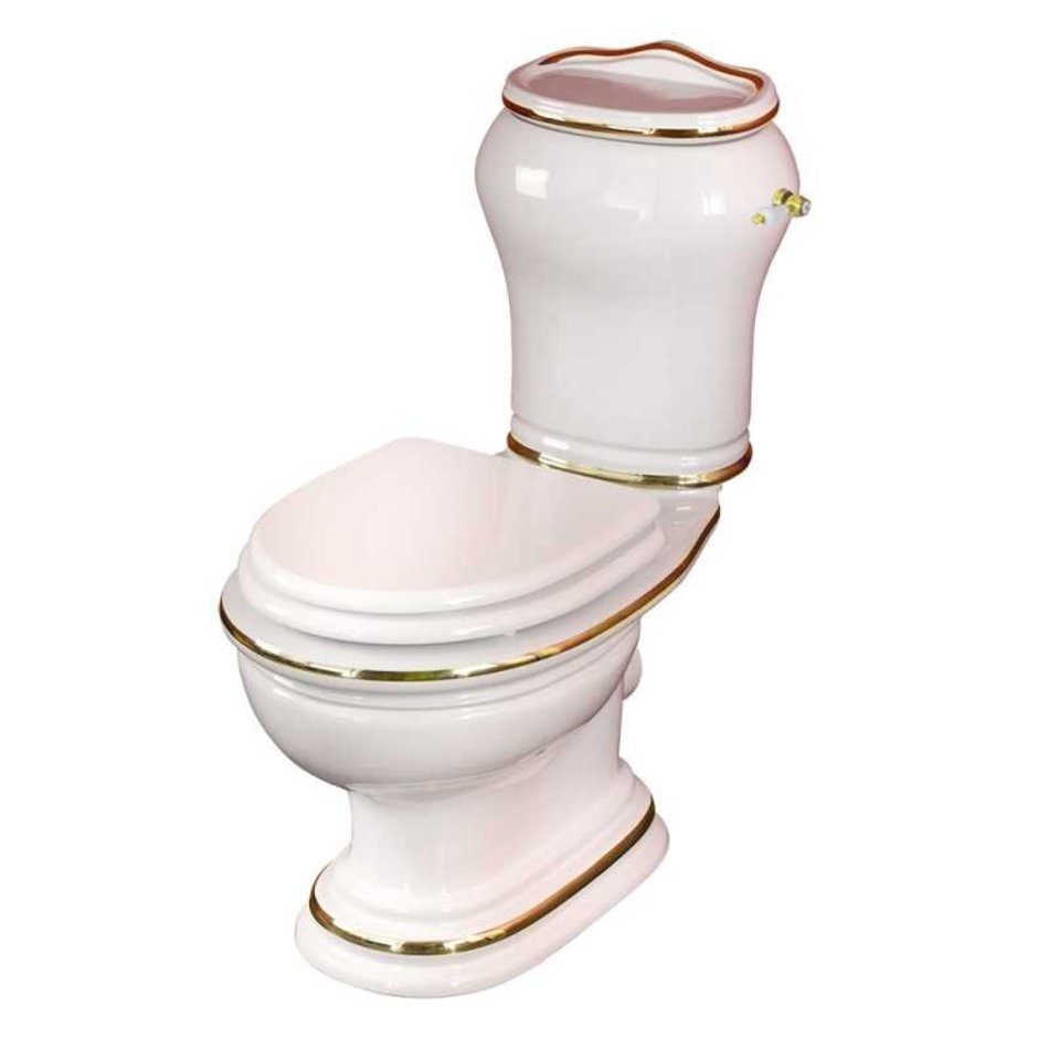 - Унитаз моноблок, выпуск в стену/пол, декор: золото/хром/бронза