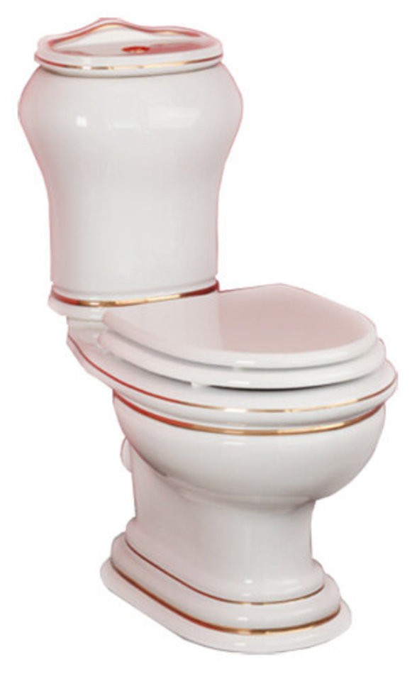 - Унитаз моноблок, выпуск в стену/пол, декор: золото/хром/бронза