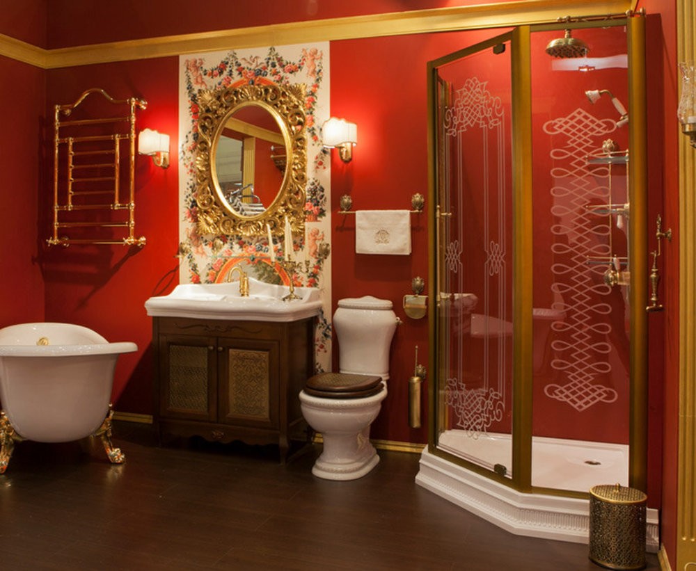 - Унитаз моноблок, выпуск в стену/пол, декор: золото/хром/бронза