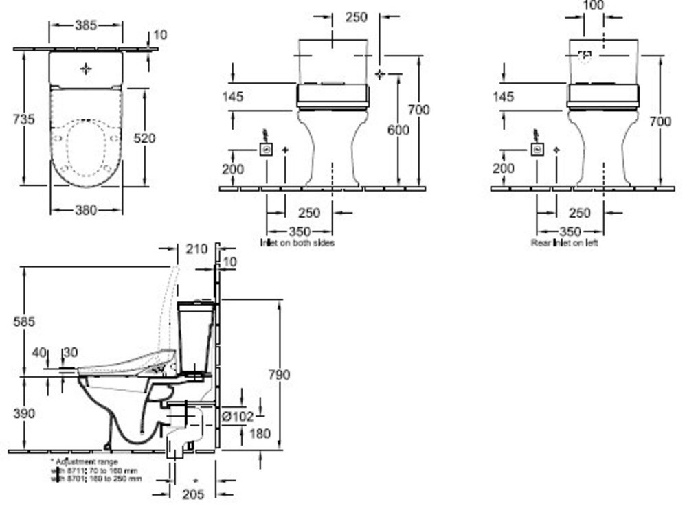 - Сливной бачок ( 7721.11.R2 ), подвод воды сбоку или сзади, сливной механизм с двойной кнопкой (слив 3/6 л)