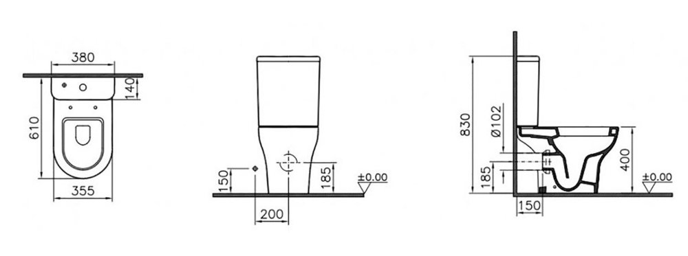 Напольный унитаз Vitra Zentrum Open-back 9824B003-7206 крышка стандарт, безободковый