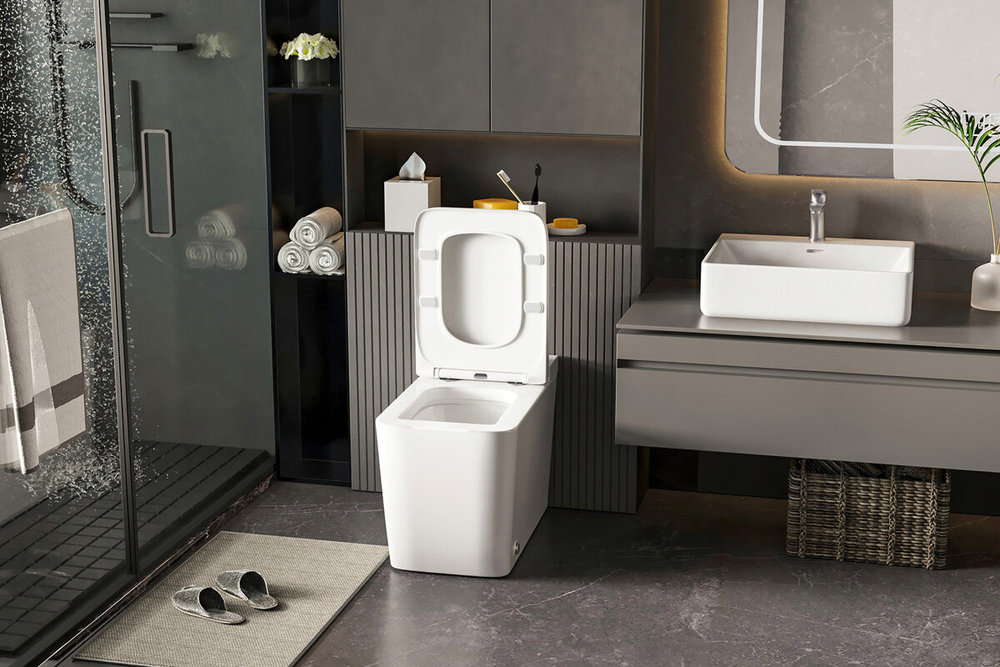 Приставной унитаз Abber Rechteck, с импульсным смывом, крышка-сиденье микролифт, белый, AC1212P