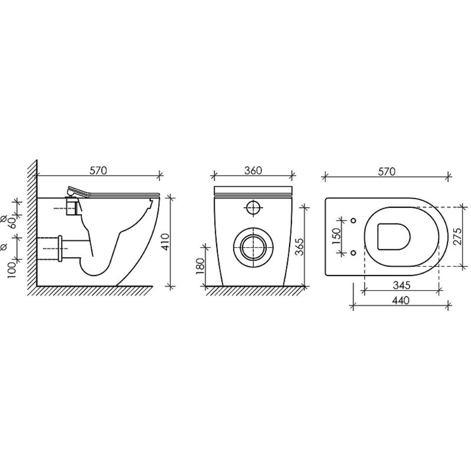 Комплектация: чаша унитаза, крышка-сиденье, крепеж для скрытого монтажа.