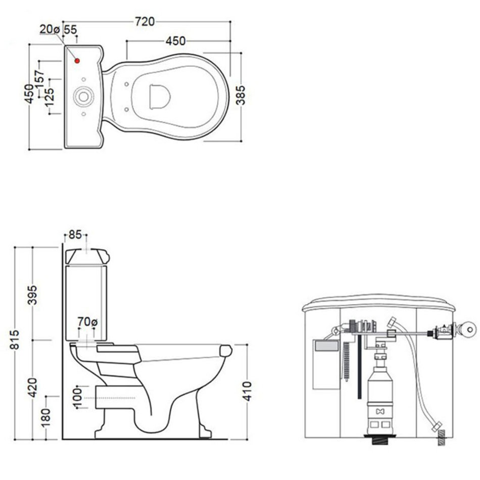 Унитаз Kerasan Retro 101301, горизонтальный выпуск, фурнитура хром
