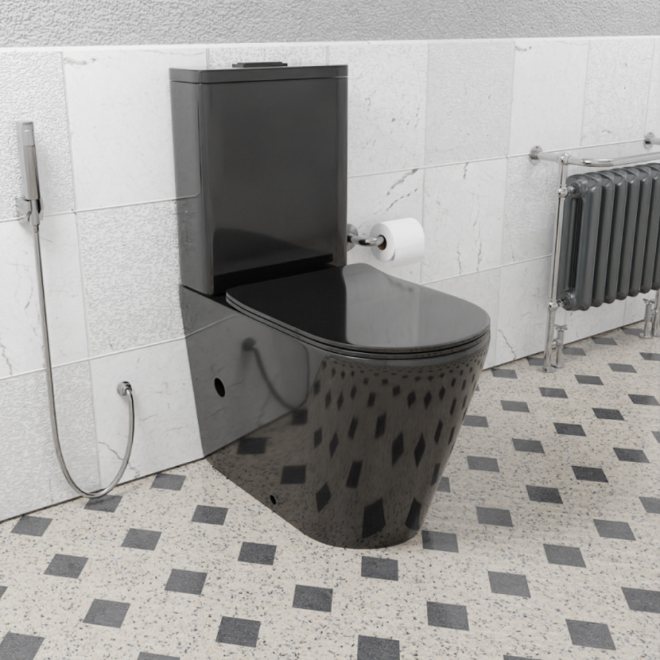 Унитаз компакт Ceramalux безободковый, крышка микролифт, черно-глянцевый, 2178-18