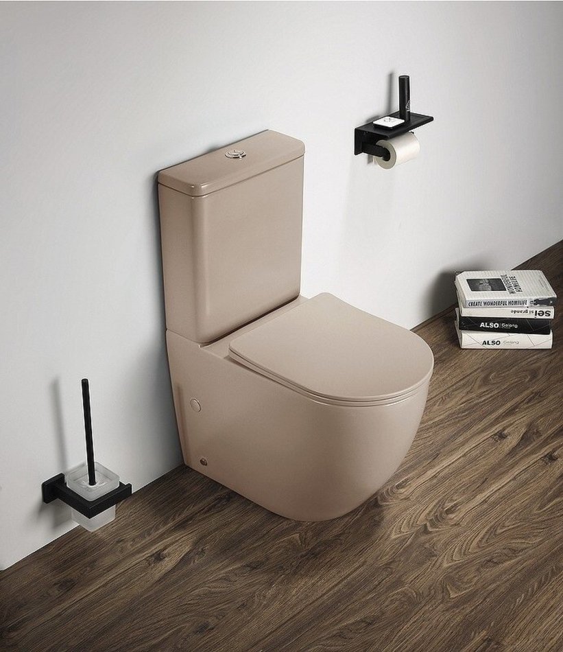 Унитаз компакт Ceramalux NС, безободковый, крышка микролифт, капучино, 2166XMC