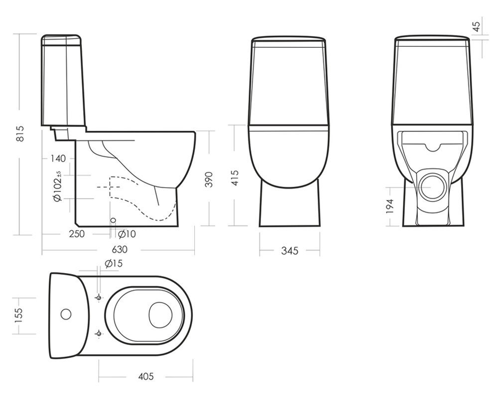 - Плоская стенка бачка сзади, экономит пространство.
