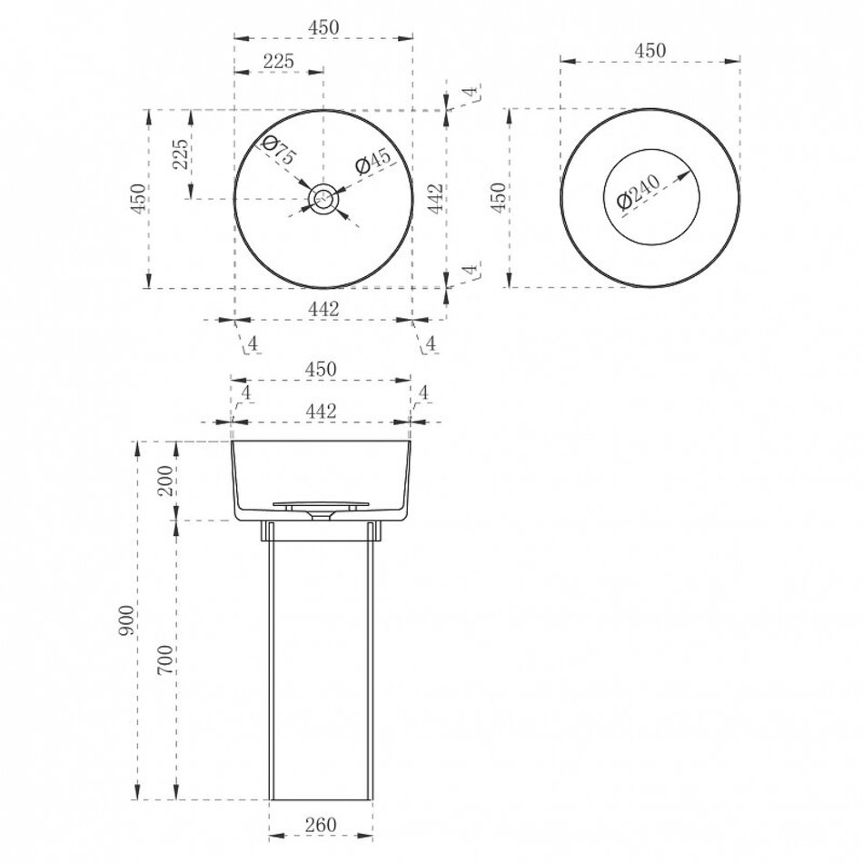 - Размеры (ШхВхГ): 450х900х450 мм.