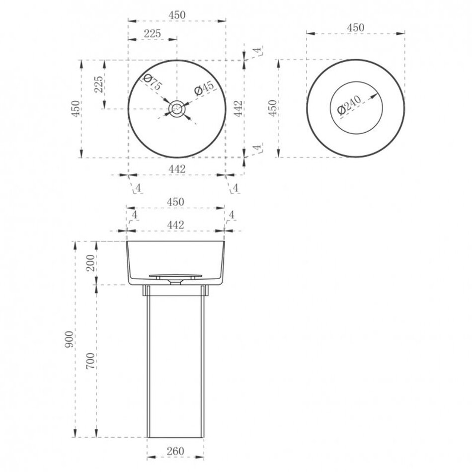 Раковина Abber Kristall AT2702Onyx, 45 х 45 см, напольная, слив в пол, прозрачная, черная