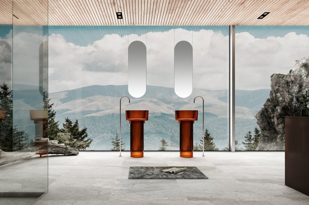 Раковина Abber Kristall AT2702Opal, 45 х 45 см, напольная, слив в пол, прозрачная, коричневая