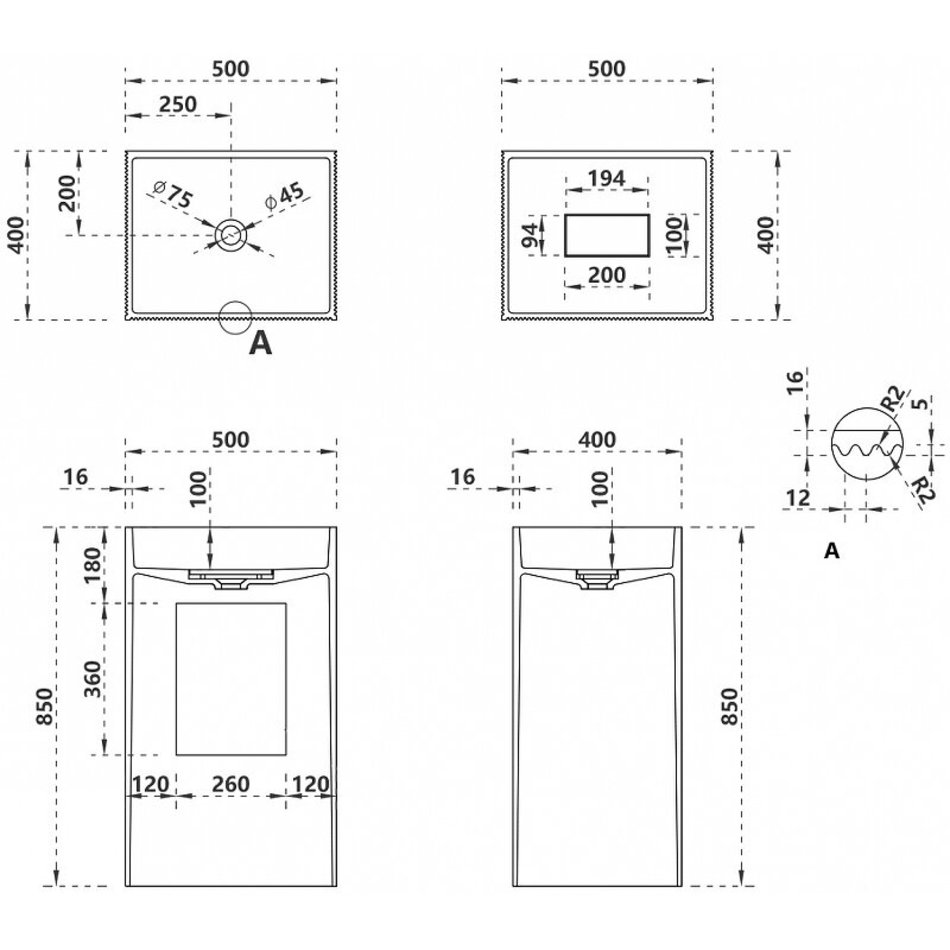 - Размеры (ШхВхГ): 500х850х400 мм.