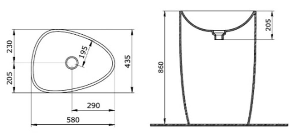 Раковина Bocchi Etna моноблок 1075-005-0125, 58 см, фарфор, черная