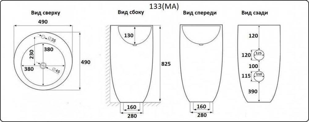 - Диаметр слива: 4.5 см