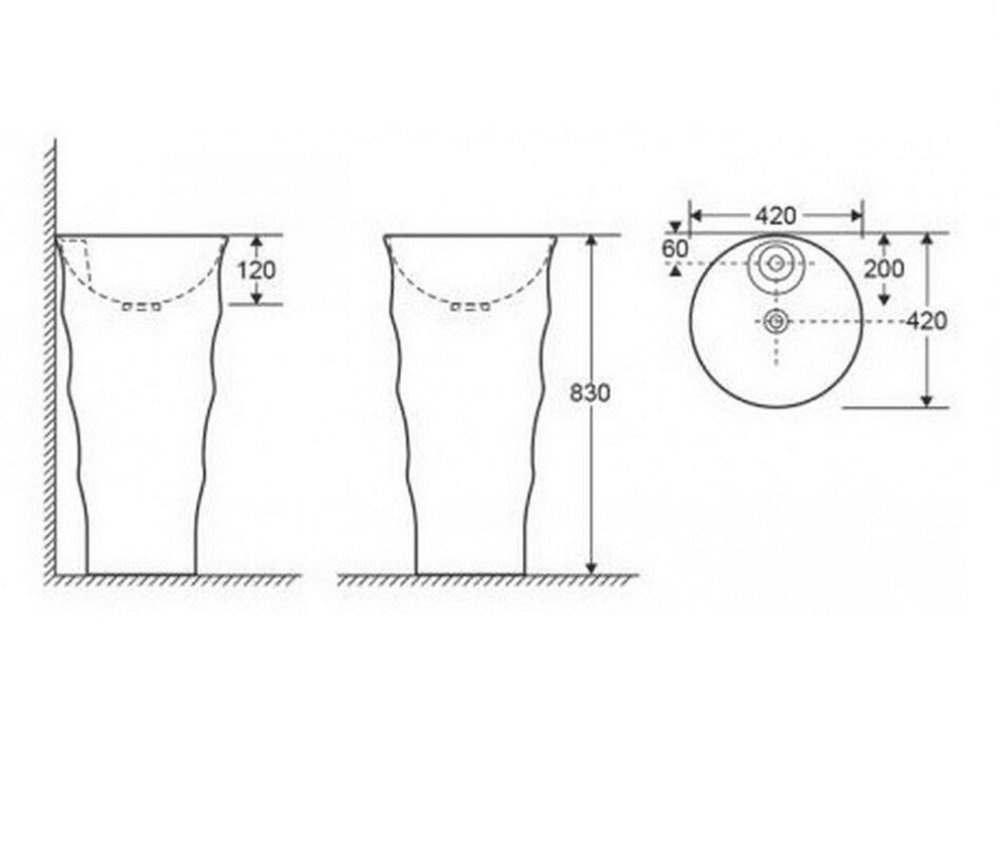 Раковина CeramaLux Серия N, G-308B, 42 х 42 см, без перелива, с отверстием под смеситель, свободностоящая.