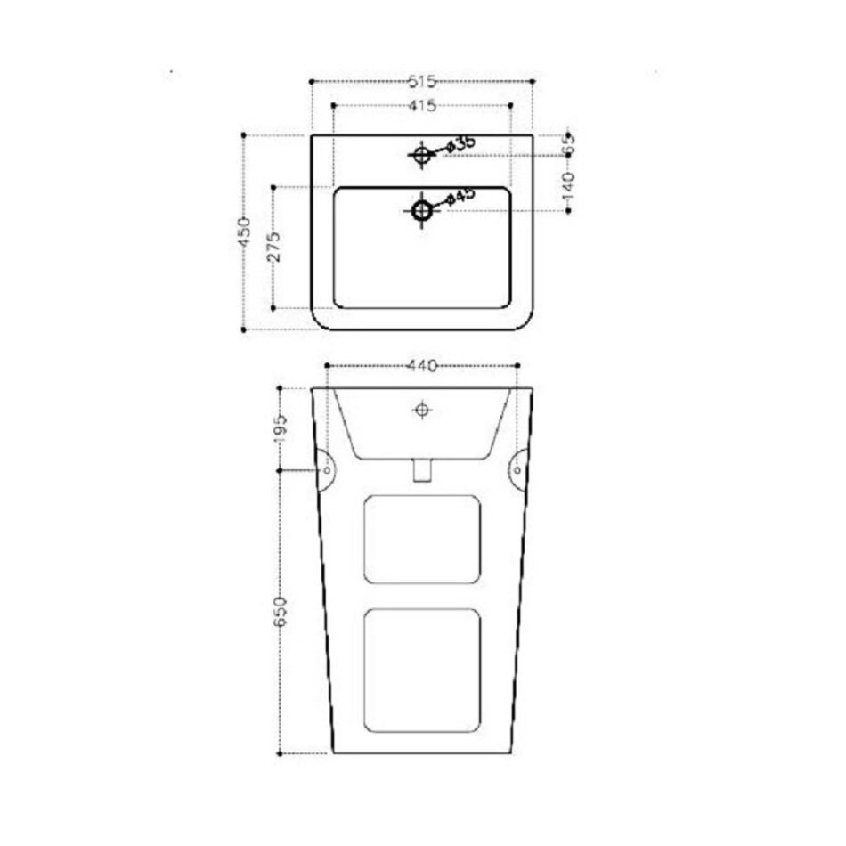 - Отверстия под смеситель