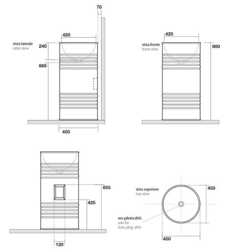 Kerasan Artwork Раковина свободностоящая "BARREL" d 45,H 90 см, без отв под смеситель. слив в стену, цвет Nero matt: