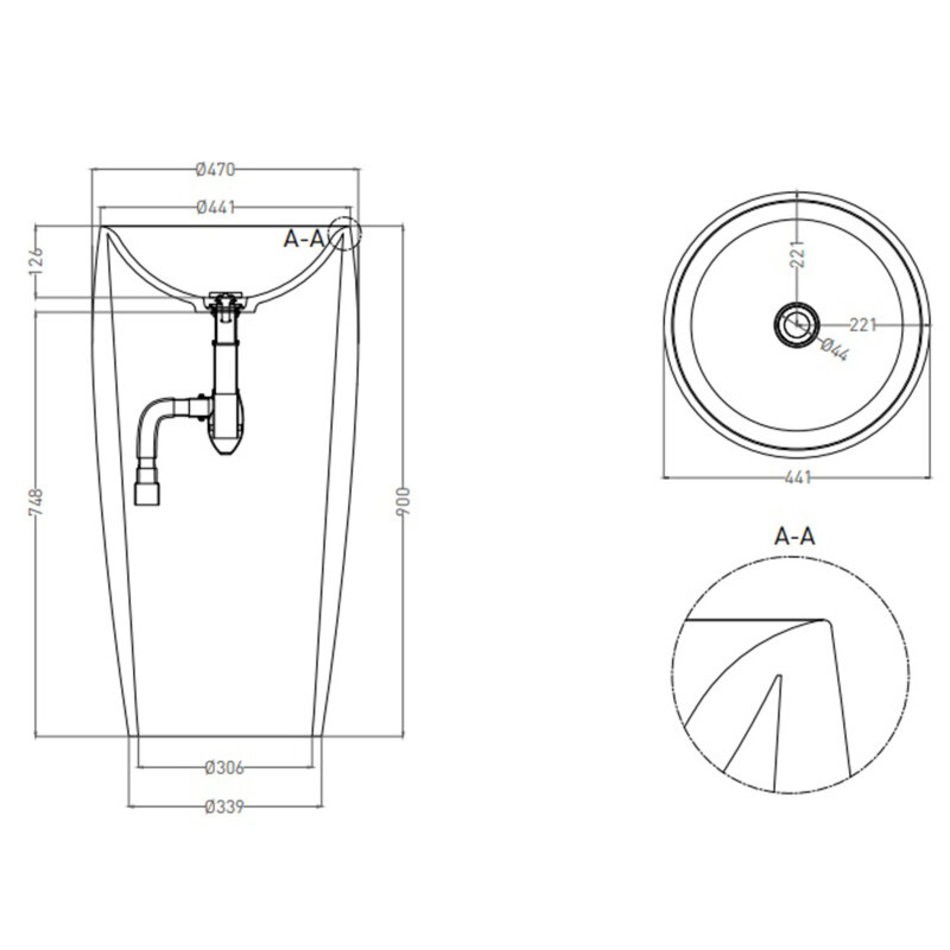 ALDA 03 — напольная раковина, которая может быть установлена со сливом как в пол, так и в стене. Конструкционная возможность предусматривает вариант выреза сзади изделия, что позволит подключать данную раковину во многих пространствах.
