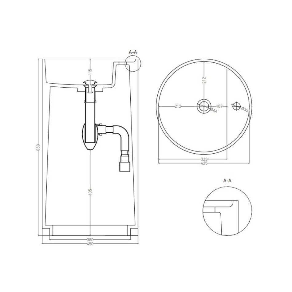 - Комплектация: раковина напольная, сифон, донный клапан Up&Down белый