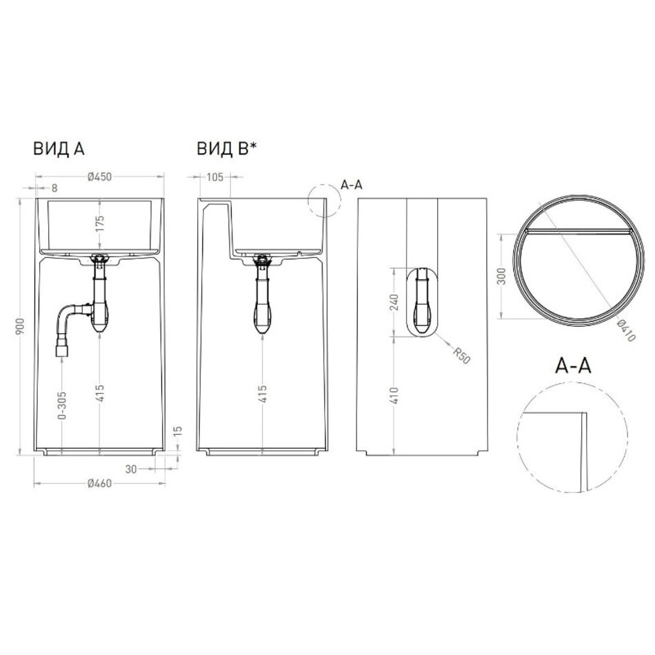 Раковина напольная Salini Armonia Round Top 01 130421TM, 45 см, из искусственного камня S-Stone, белый матовый