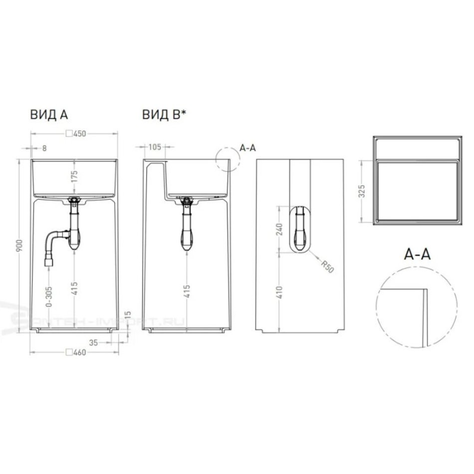 Раковина напольная Salini Armonia Square Top 01 130511T1G, 45 см, из искусственного камня S-Sense, белый глянцевый