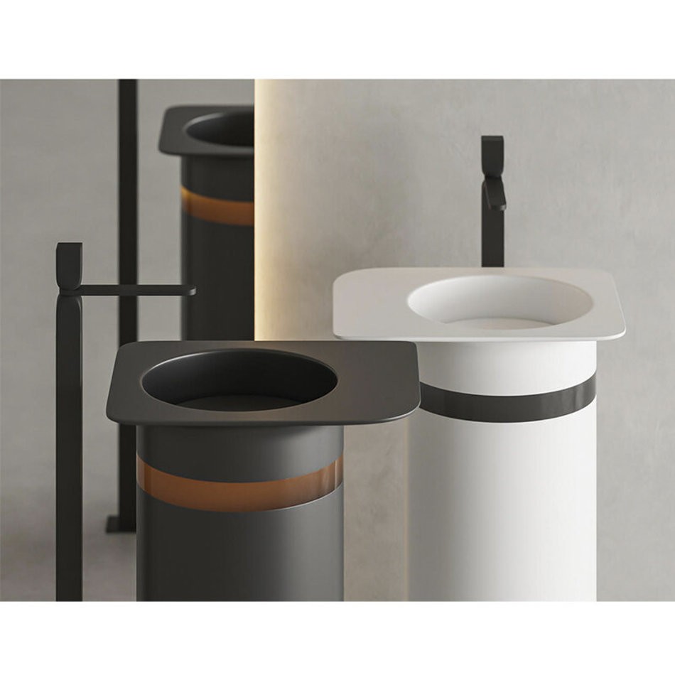 Раковина Ninfea 01 в напольном исполнении отличается точно выверенными пропорциями и элегантным контрастом прямых и закругленных линий. Изящное крыло станет удобной дополнительной поверхностью для аксессуаров. Круглая вставка из уникального материала S-Shine на основе полупрозрачной эпоксидной смолы добавляет легкости и изящества ванной комнате.