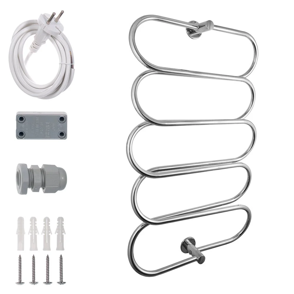 Комплектация: полотенцесушитель на кронштейнах — 1 шт.; электрический шнур (150 см) с вилкой — 1 шт.; муфта переходная для подключения электрического шнура — 1 шт.; уплотнительные прокладки — комплект; шурупы с дюбелями — комплект; инструкция — 1 шт.